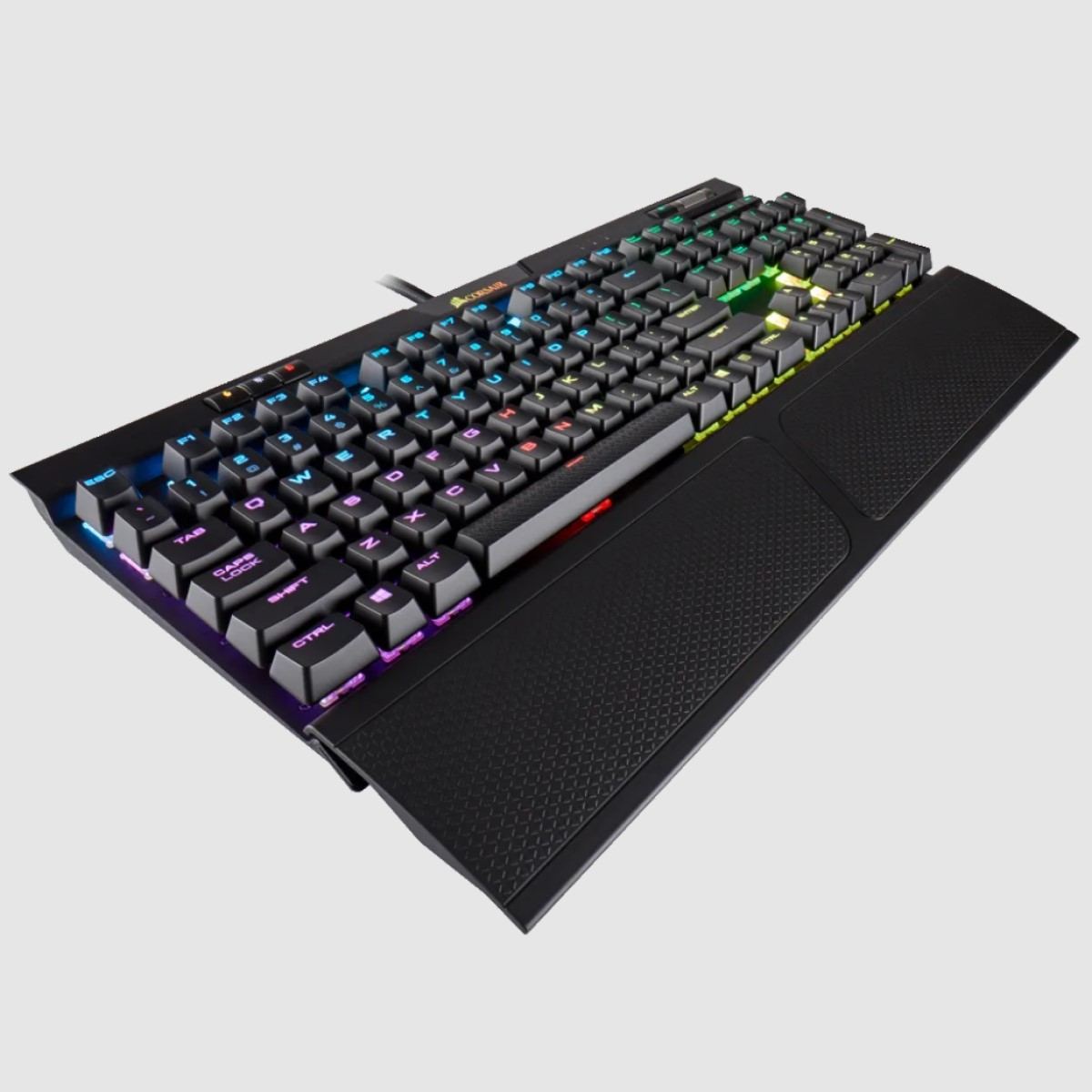 El teclado mecánico CORSAIR K70 RGB MK.2 es un teclado mecánico premium para juegos diseñado para durar, con una estructura de aluminio, interruptores 100 % CHERRY MX y 8 MB de almacenamiento interno de perfiles.