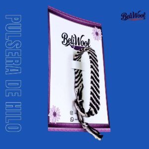 Su diseño combina hilos blancos y negros entrelazados con cuidado y propósito, formando un patrón espiral que recuerda que la vida no es lineal, sino una danza constante entre la luz y la sombra.